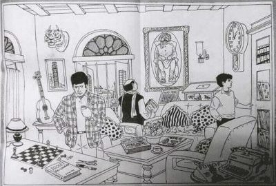 5. Den yngste person på billedet er drengen til højre. Han kigger i bøger. Men hvis du ser på hans skjorte, vil du bemærke, at der på den ene side er et langt ærme og på den anden side et trekvart ærme.